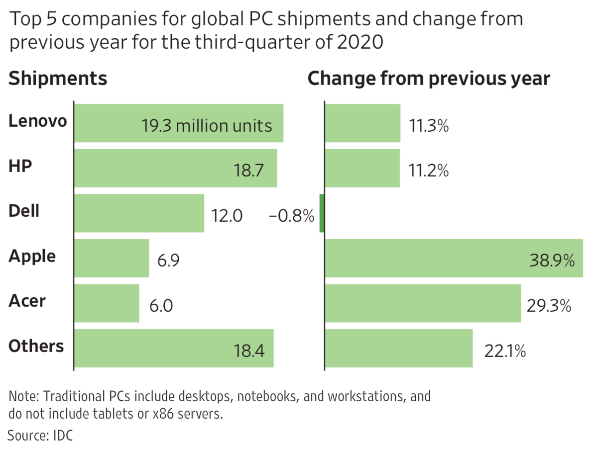 受新冠疫情影响,远程工作、在线教育、以及娱乐需求等推动,全球 PC 取得了较大幅度增长。