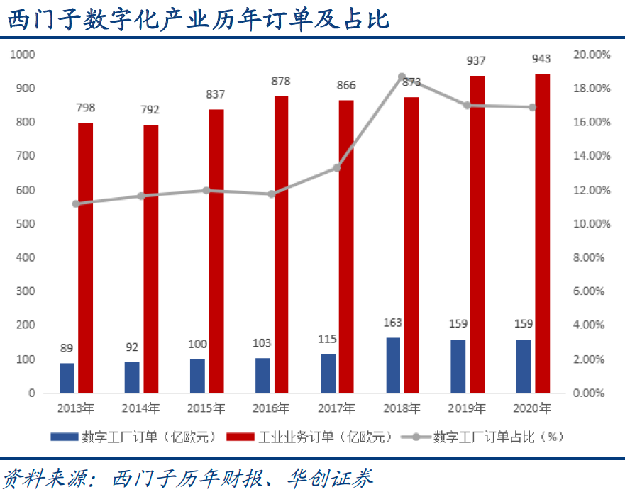 无论是订单,还是营收创造,西门子数字化业务在整个工业业务的占比近年取得了稳步提升。