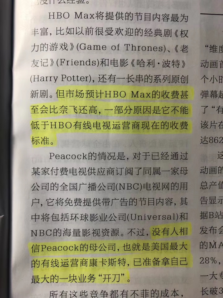 (4) NBC Universal 旗下的 Peacock 是最新入场(2020 年7月)的流媒体玩家;(注:NBC 的母公司是 Comcast);