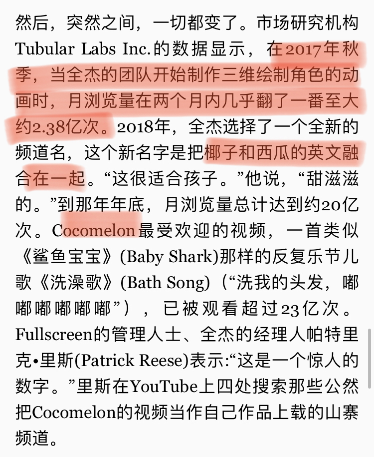 一个专门播放童谣和原创歌曲的 YouTube 频道,全球浏览量最高的儿童频道,每个月的广告收入高达 1130 万美元。