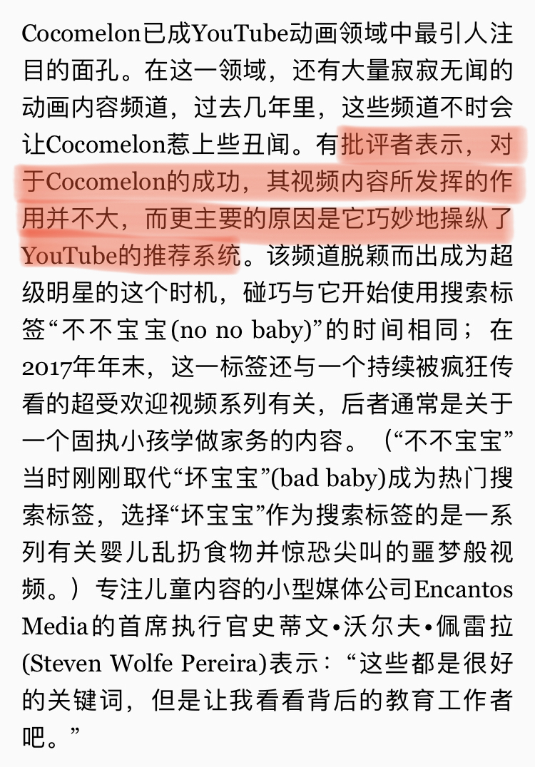 这家公司的新尝试仍反映出在YouTube最受欢迎创作者中出现的一股潮流:改变单纯依赖YouTube的商业模式。Cocomelon每一个新视频如今需要两个月左右来制作。威廉姆斯说,拓展到其他领域的需求和潜力已经变得很明显。威廉姆斯已经至少帮助过一位年轻明星获得在尼克儿童频道(Nickelodeon)上播出节目的机会,并将一系列商品摆上沃尔玛的货架。“看看YouTube上的各种频道、消费品、付费系列和现场活动。”他说。“我看到了一个巨大的机会。”