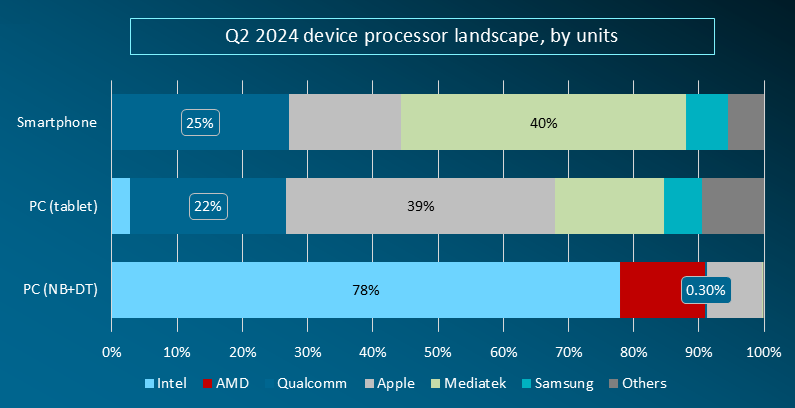 对比 Intel 止步不前,而另外三家都取得了很大的增长。