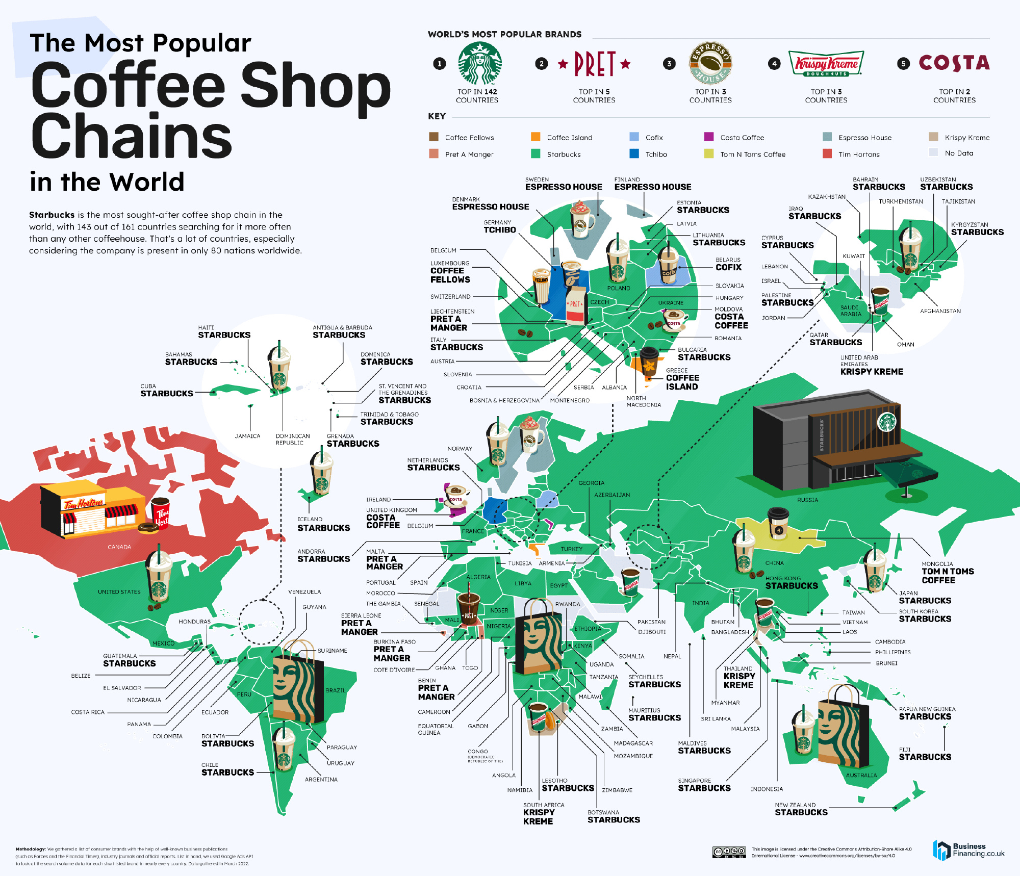 类似麦当劳的汉堡价格,星巴克在全球大部分地区拥有大量门店,其咖啡价格也可用于衡量当地的消费水平。