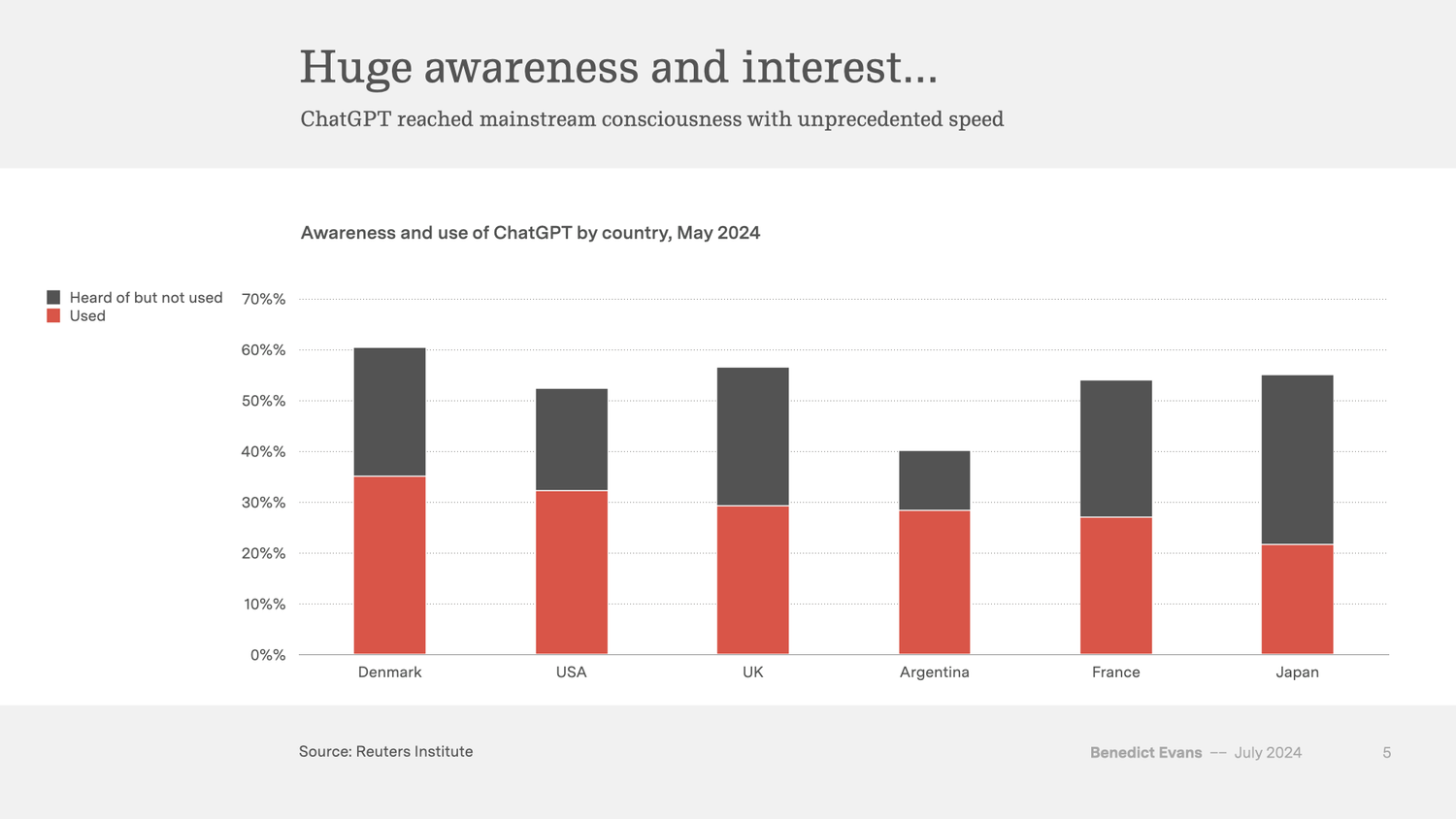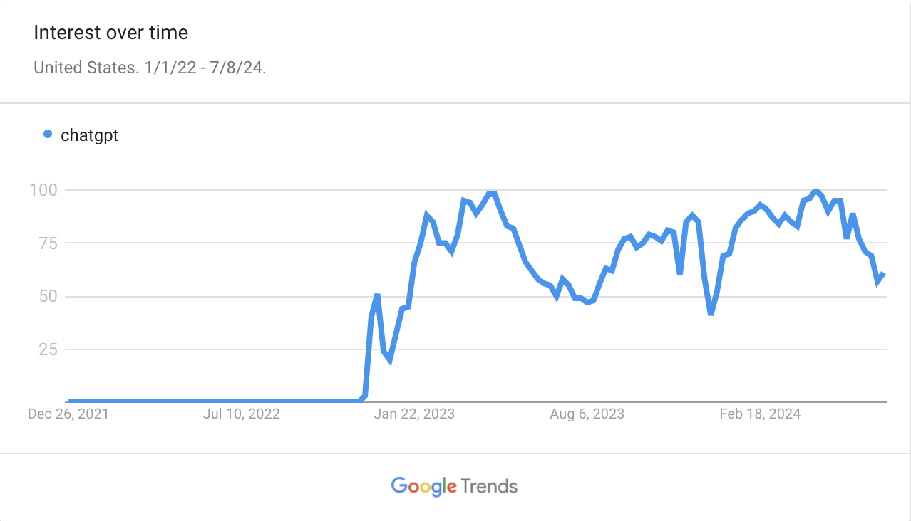 PEW Research Center 在 2023 年 3 月对美国消费者的调研数据显示,58% 的美国人听说过或有一定了解 ChatGPT。