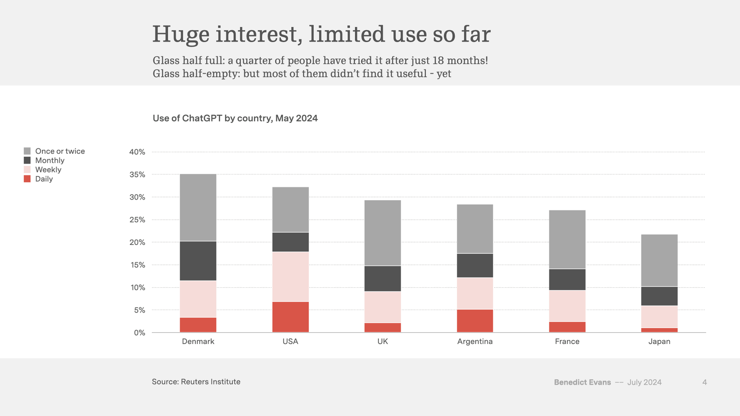 有 14% 的调研对象反馈,将 ChatGPT 用于过娱乐、工作或教育需求。
