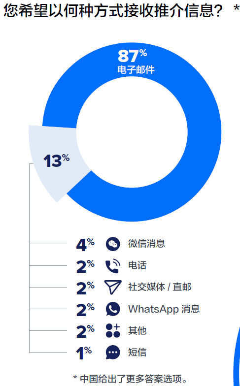 对于 Email 的使用,中美之间有巨大差别,中国消费者更依赖微信做沟通。
