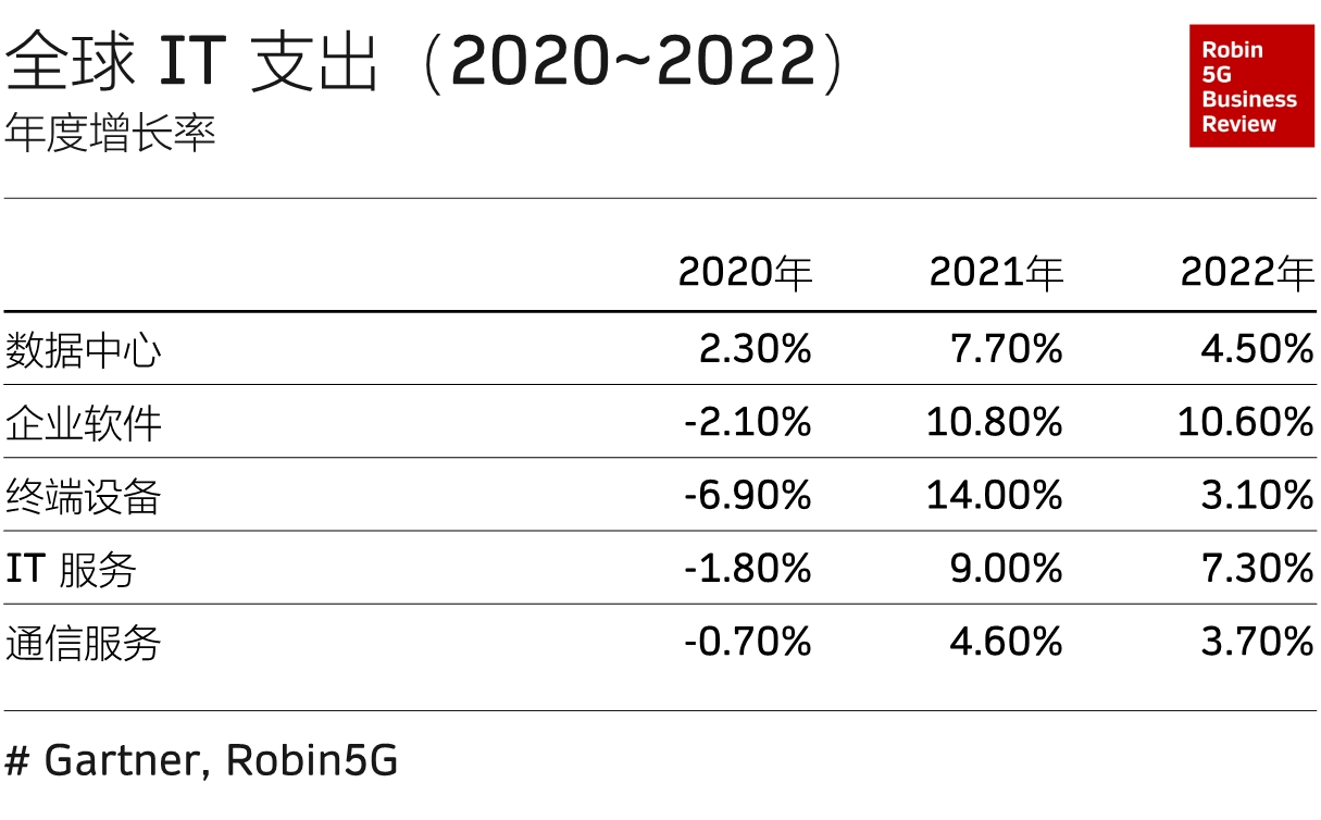 Gartner 发布了 2020~2022 全球 IT 开支估算结果:2020 年全球 IT 指出为 3.7 万亿美元,同比减少了 2.2%。