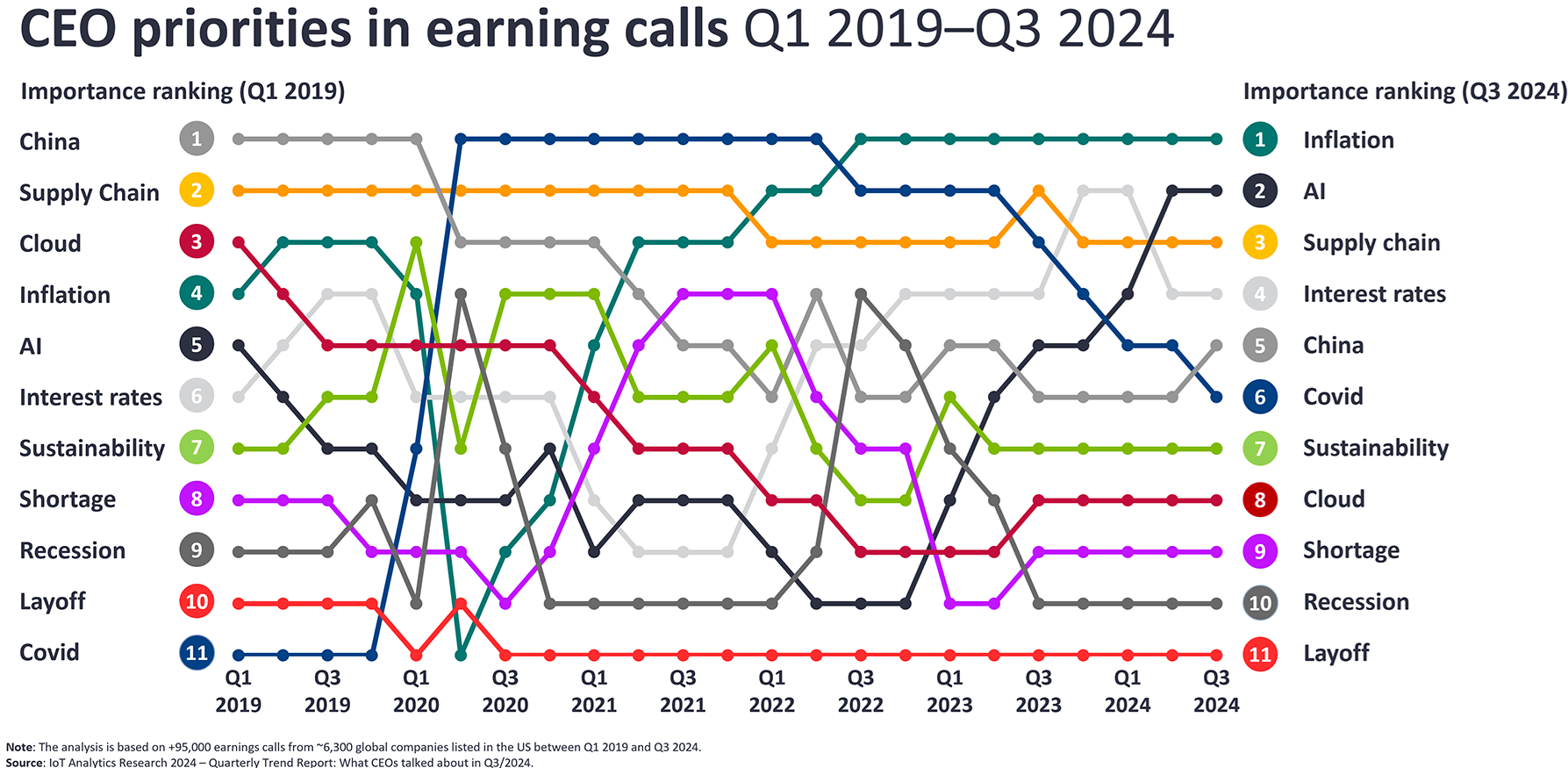IoT Analytics 针对 1500 家在美国上市的跨国公司的 2022Q3 季报的关键字进行了统计分析。