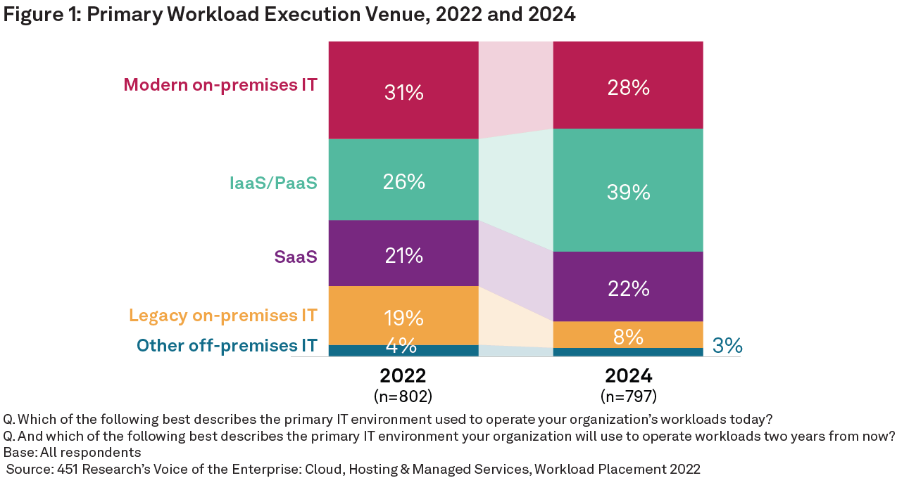 451 Research:企业工作负载的类型分配 2022 vs. 2024