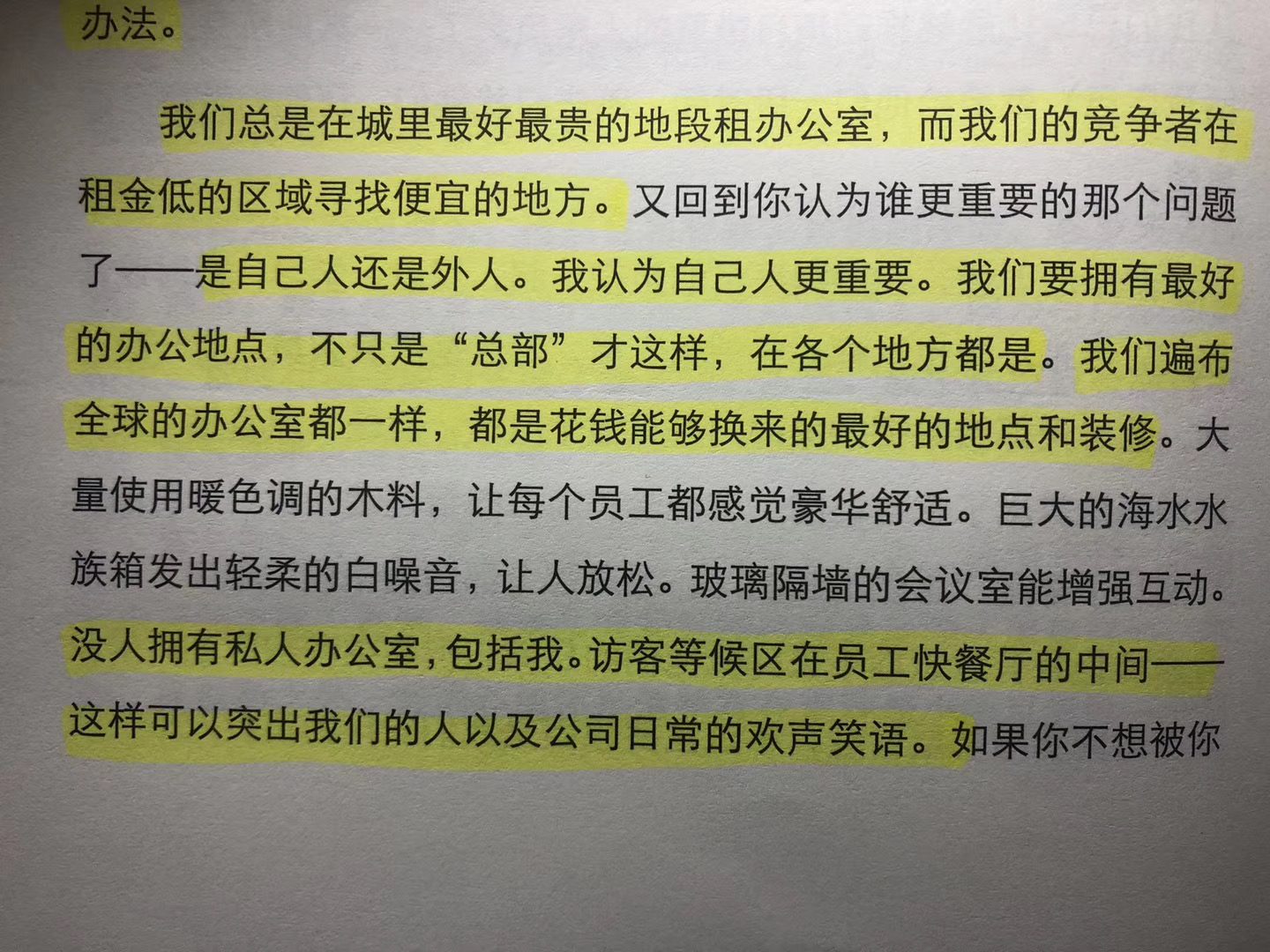 ⑸ 从创始人起,所有高管都没有单独的办公室,全开放式结构;没有 VIP 电梯通道,也没有专属停车位;没有管理层餐厅;