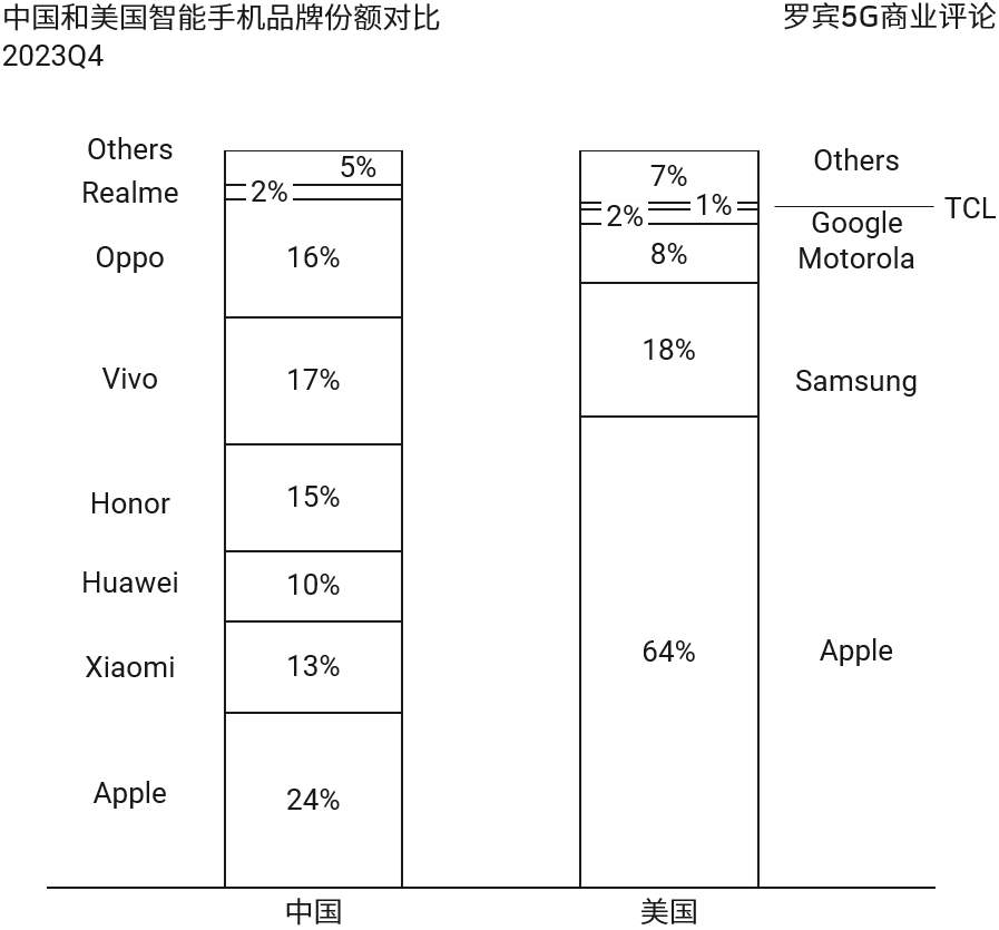 Morgan Stanley 的调研显示,美国三大运营商的用户有相当大比例选择了 Apple iPhone。其中,AT&T 有 64% 的用户选择了 iPhone。这一比例可能算得上全球运营商中最高了。