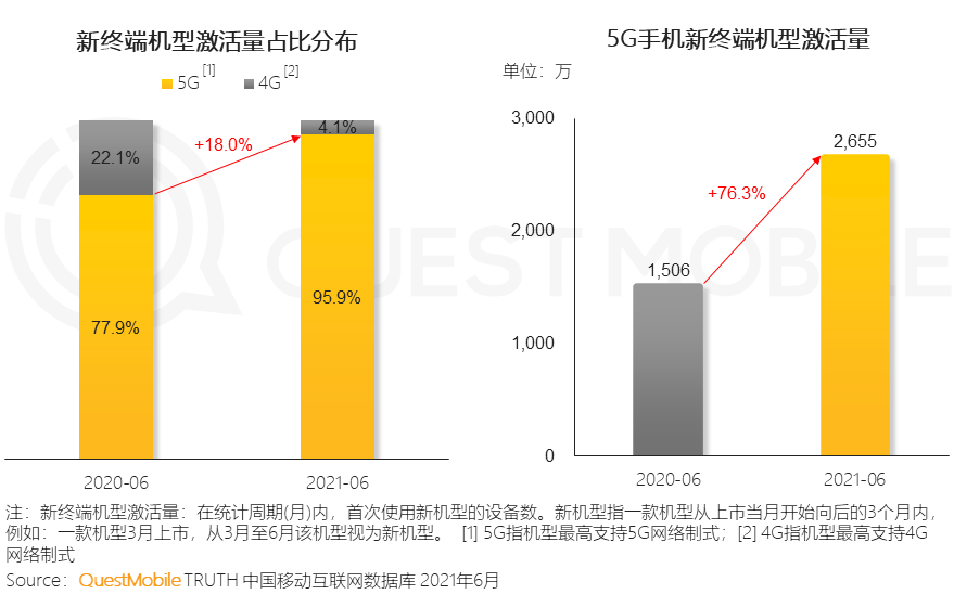 下图展示了 4G 向 5G 的迁移过程;结合前几天工信部的官方披露,全国使用 5G 手机的终端达到了 6000 万部。