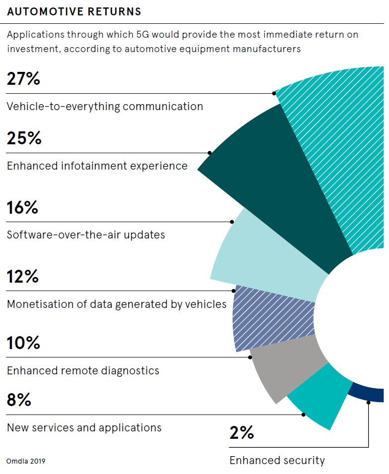 Applications through which 5G would provide the most immediate return on investment, according to automotive equipment manufacturers.