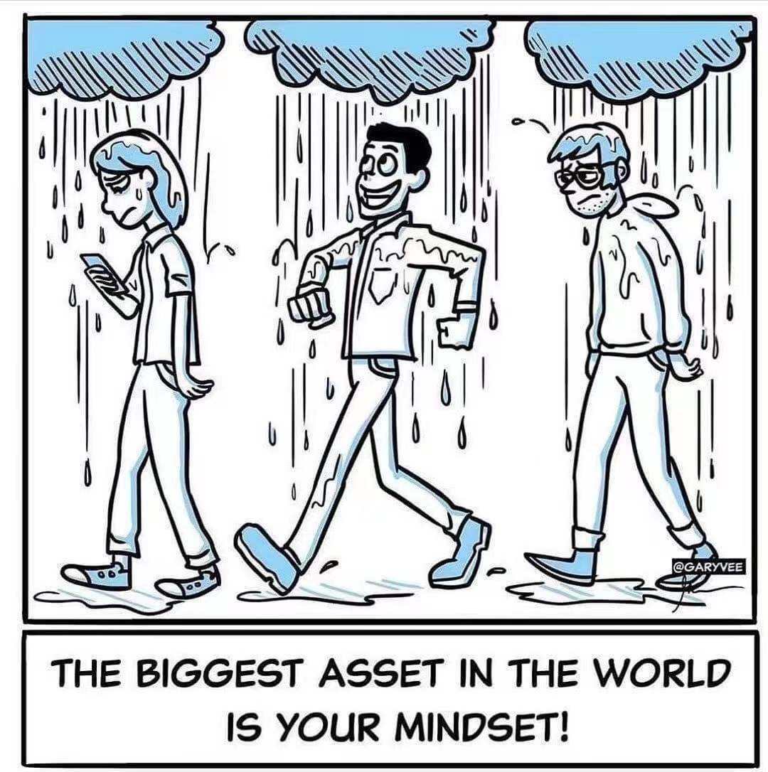 赞同图一中间那位的做法;其也认识到外部环境处于风雨中,但自己仍然可以越走越好。