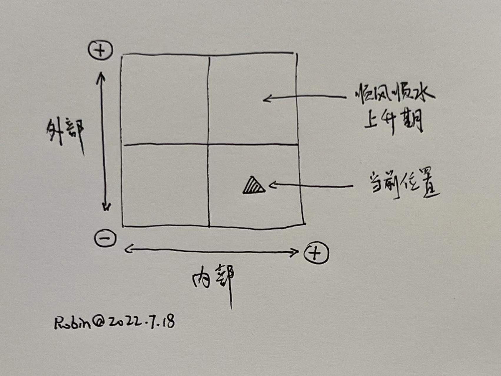 绘制了一个矩阵,纵轴是外部经济和政治环境的状态(正面 or 负面);横轴是个体的内部视角,你是积极 or 消极。