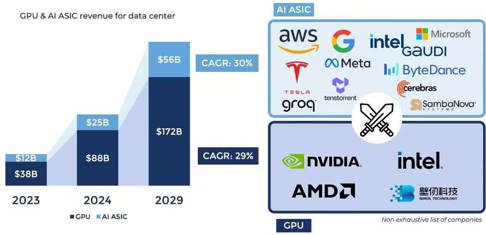 预计到 2029 年市场规模可达 1,510 亿美元,除了 GPU 外,AI ASIC 也会有很大空间。