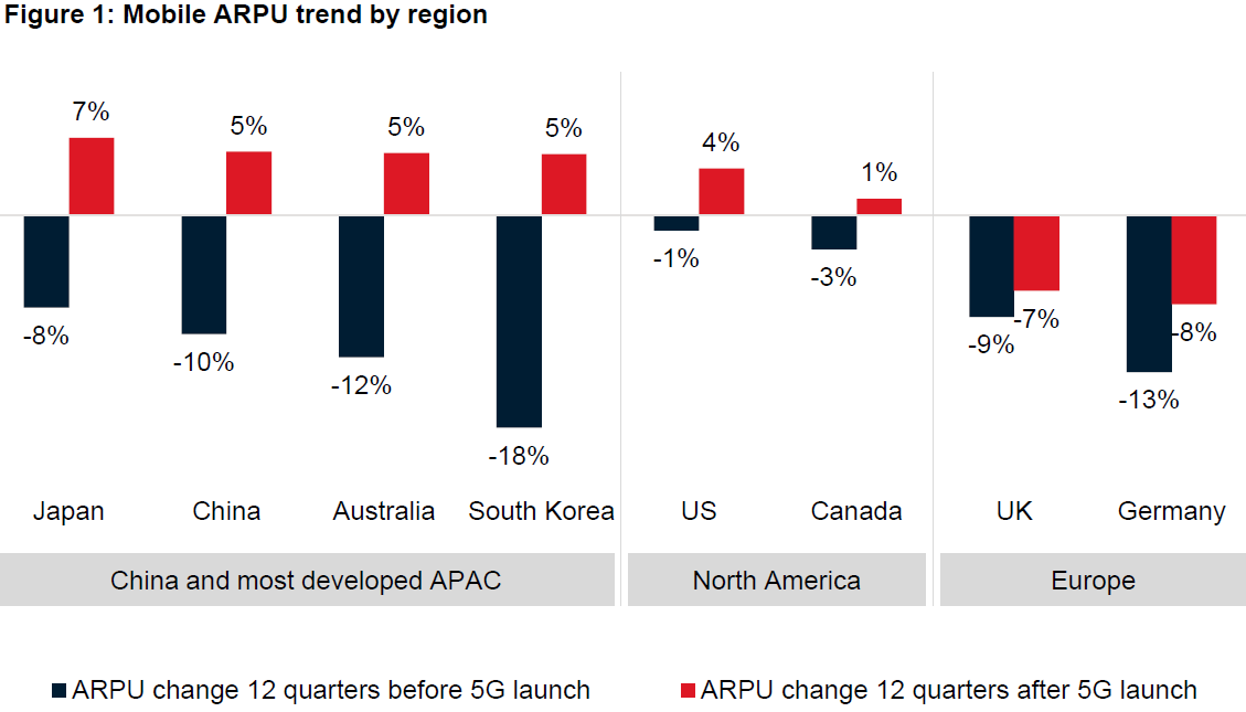 八个国家 5G 业务对运营商 ARPU 的影响观察