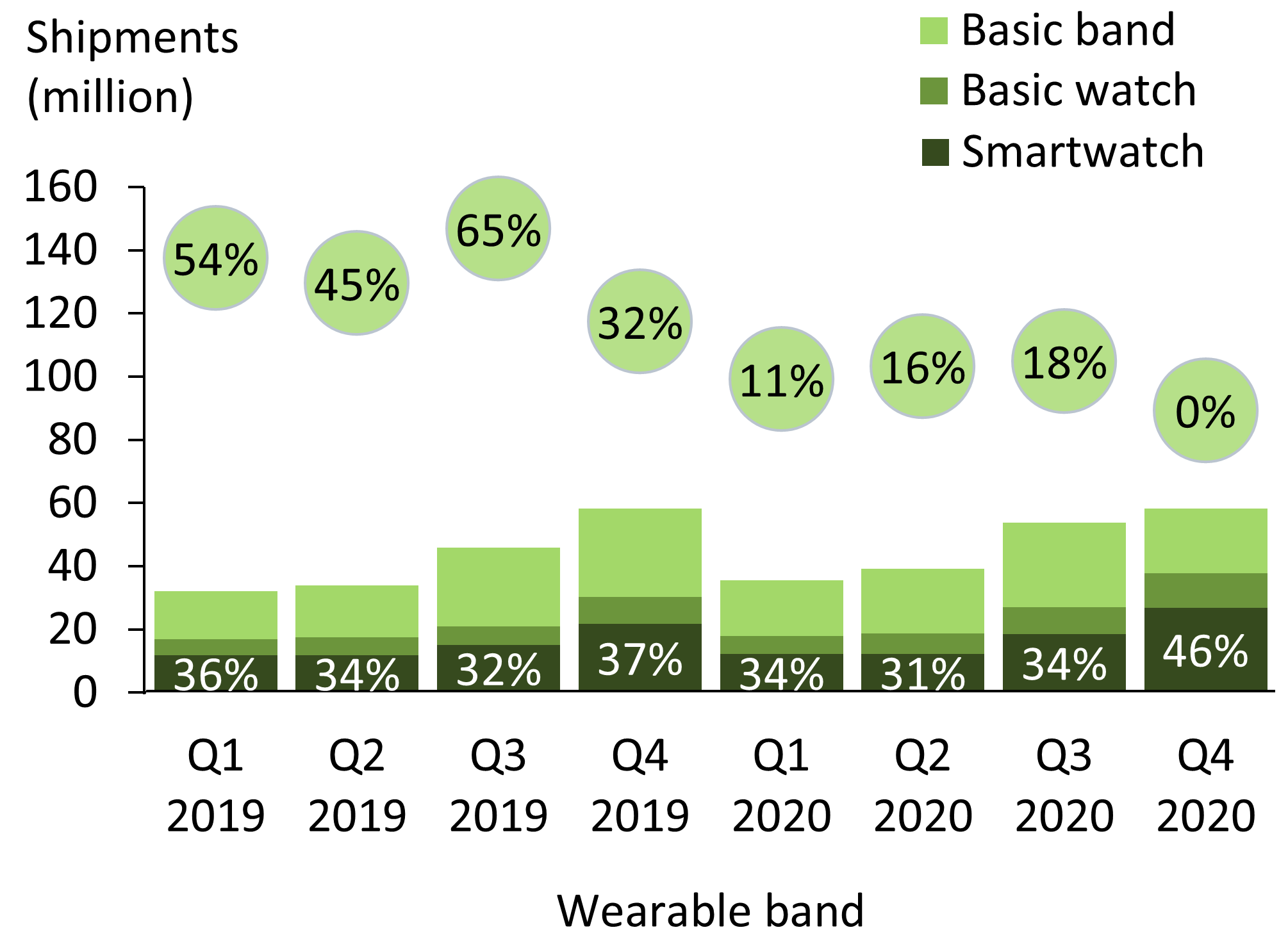而智能手表的单价限制高于手环,可认为推动了腕间穿戴市场增量又增收。