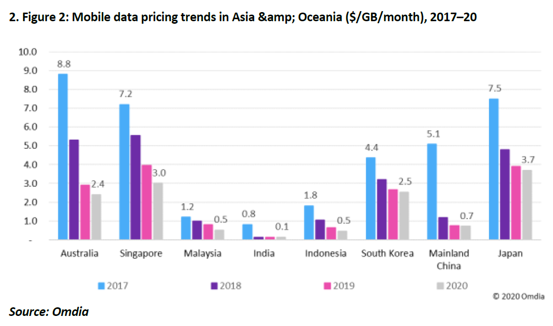 经济学人的一篇文章,对比了东京、首尔、伦敦、巴黎和纽约的移动流量资费(每月 5GB 的资费情况),结论就是日本最贵,东京的价格是巴黎的四倍以上。