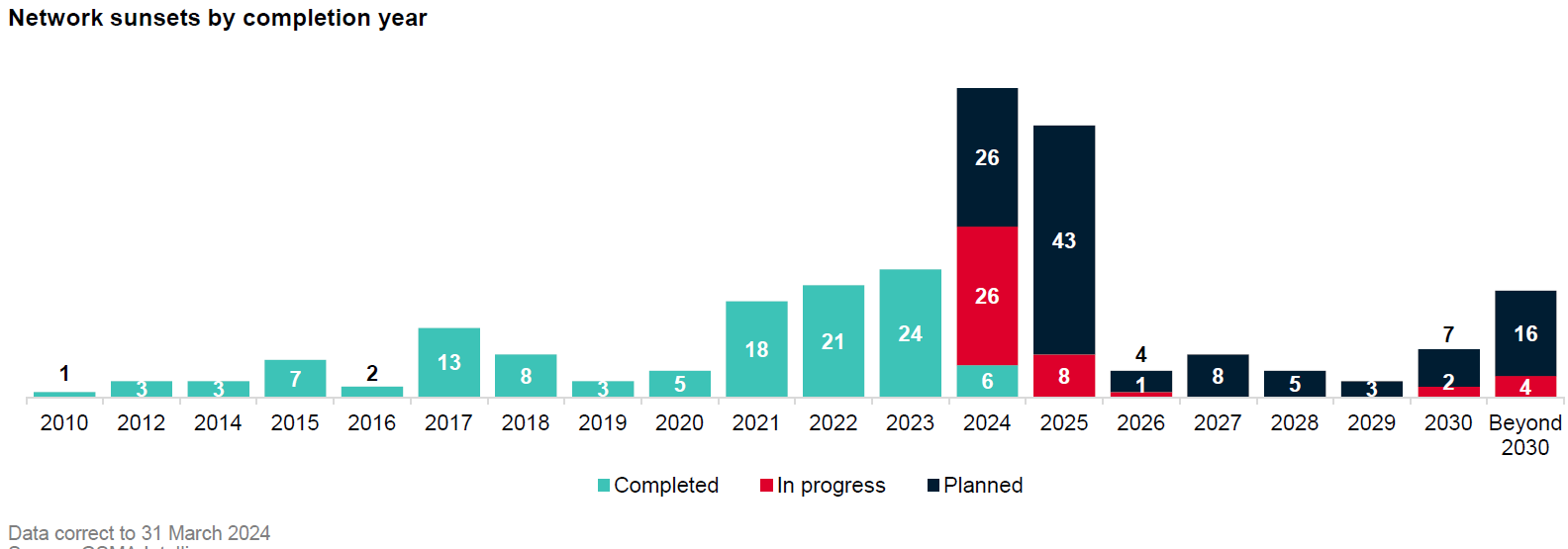 2G 和 3G 的退网正在成为全球各地运营商的重要议程。