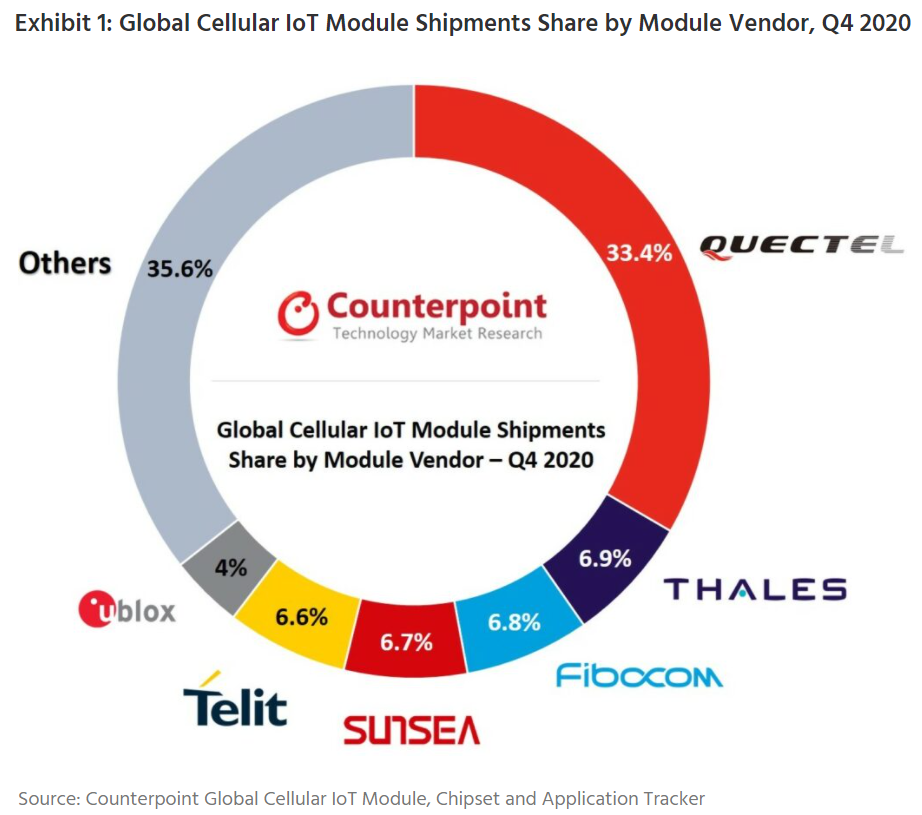 通信模组是物联网服务开展的必备部件,其单位价格也会影响应用的普及程度。