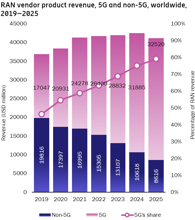2021-2022 年算增长的小高峰(几个重要市场 5G 网络的规模建设),2023 到 2027 增幅会逐渐放缓。