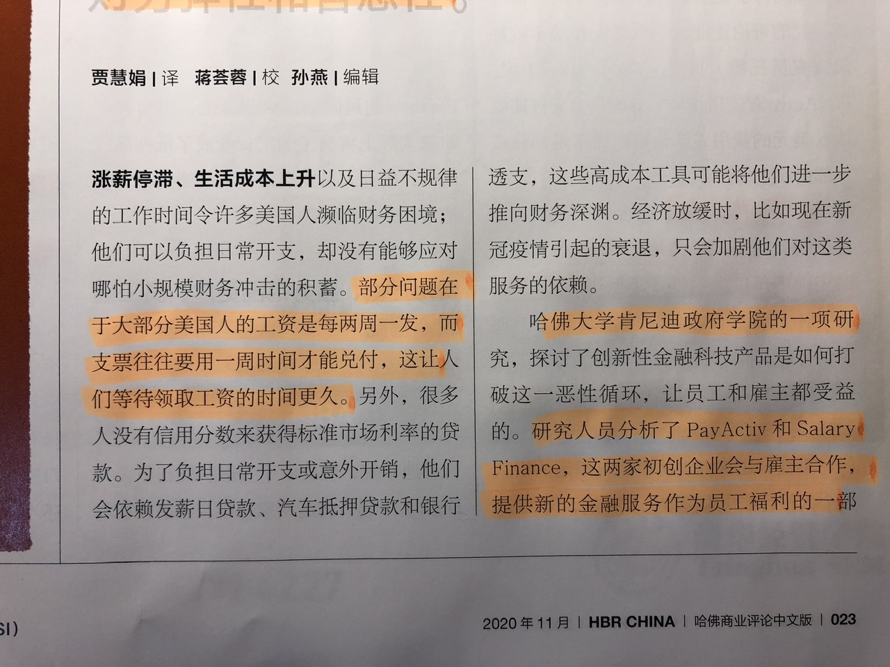 哈佛商业评论介绍的金融科技创新案例:两周一次的发薪时间,你都等不起;然后提前给你薪水,收取 5.9~19.9%的利率…