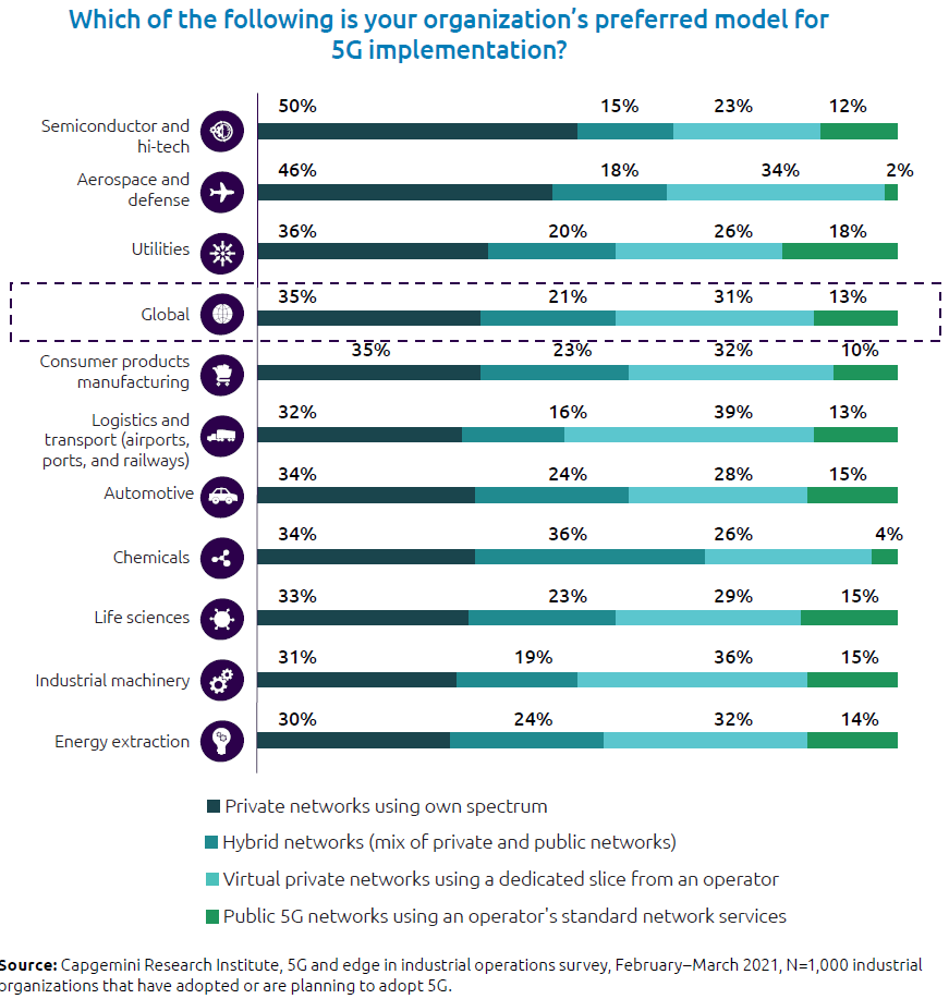 凯捷咨询 Capgemini 针对全球 1,000 名企业管理者(总监及以上)进行调研,了解对 5G 部署模式的企业选择倾向性。