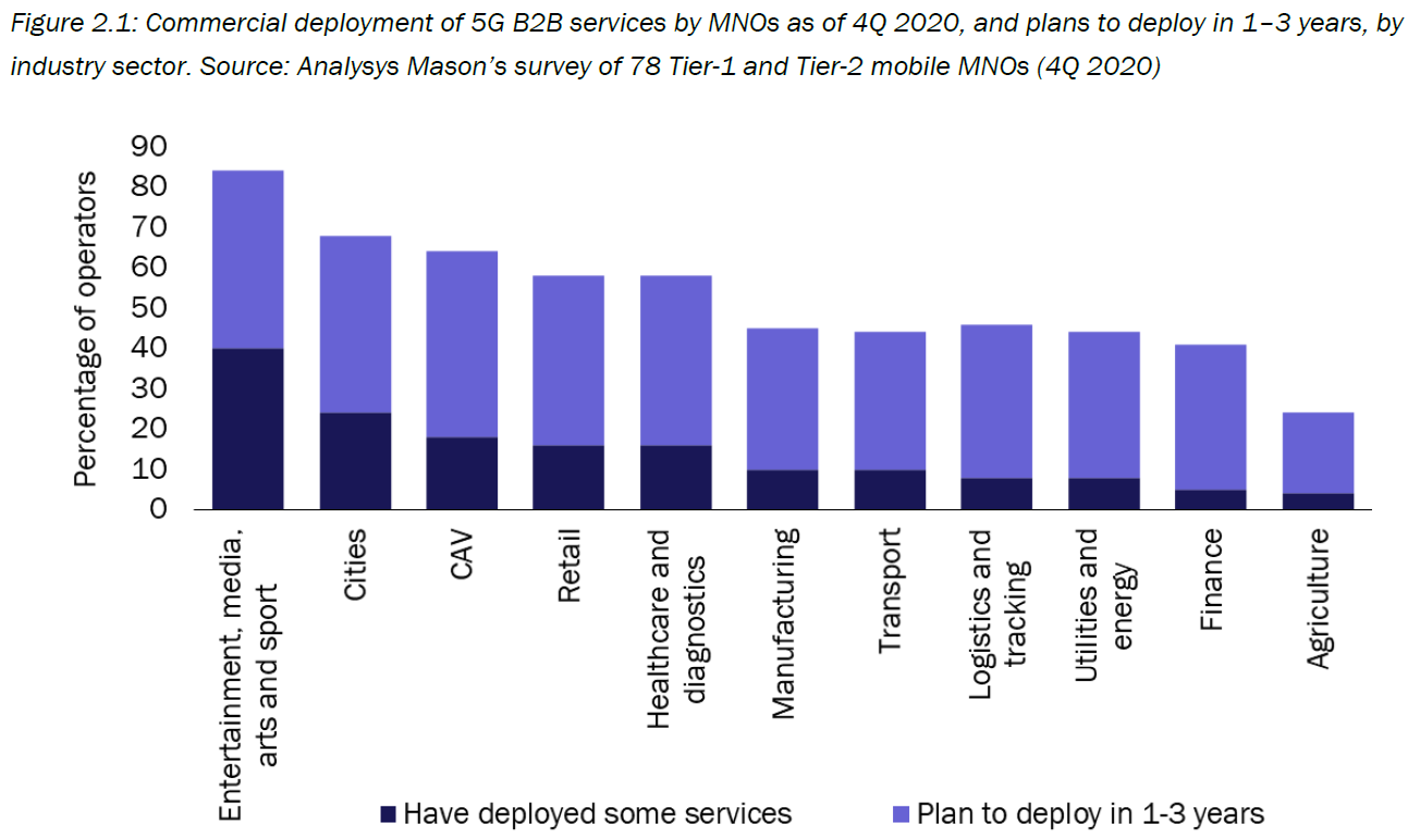 (3) 大部分运营商在大部分领域进展还有限,相对好是在汽车和金融领域。