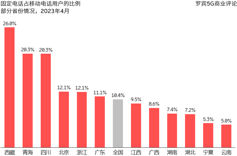 固定电话超过 5% 份额的省份有:四川、广东、江苏、山东、浙江。