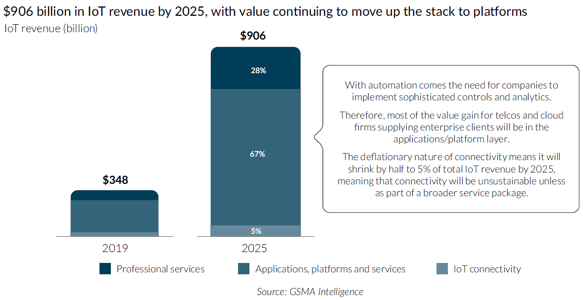 来自 IDC 咨询公司的研究,其估算了 IoT 基础设施在未来几年的收入空间: