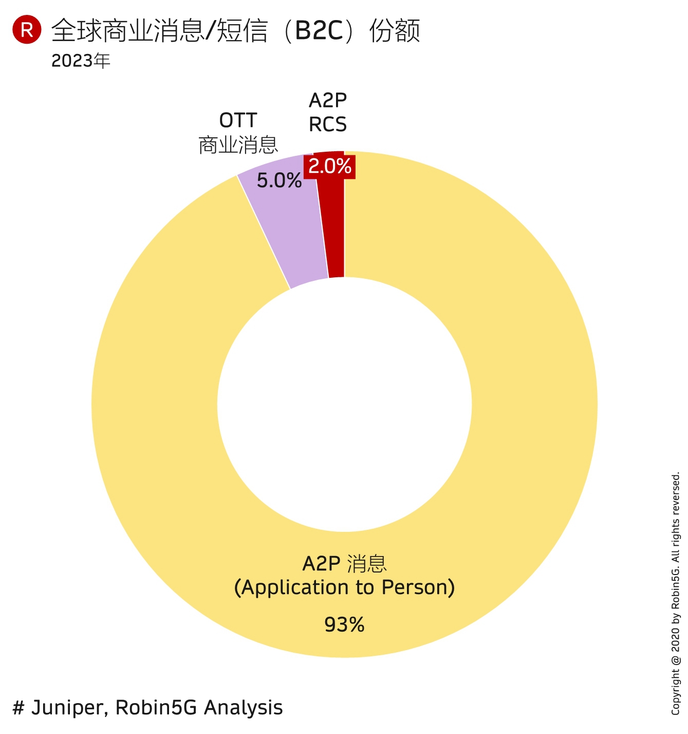 给大家一些参考素材,Juniper 的一项研究,围绕 2023 年全球商业短消息(B2C)的市场份额。