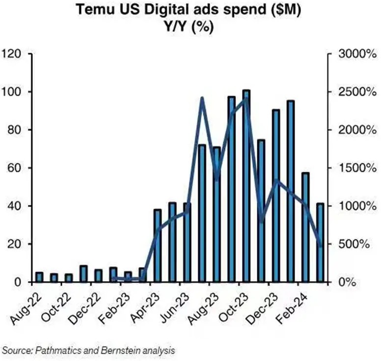 Temu (拼多多旗下)和 Shein 两家源自中国的电子商务公司正在 “精耕” 美国市场。Shein 的用户量爬坡早一些,Temu 则是 2023 前后在迅速崛起。