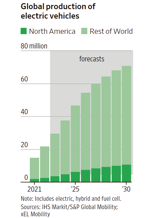 全球电动汽车的电池需求预计从给 2021 年的 823GWh,提升到 2025 年的 3,252 GWh。中国将继续占最大份额。