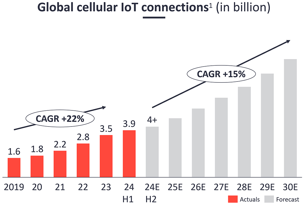 Counterpoint 预计全球物联网连接中 eSIM 的数量在 2023-2030 的年复合增长 CAGR 可达 43%。2030 年将有 22 以物联网连接支持 eSIM,占到整个蜂窝物联网连接数的三分之一。