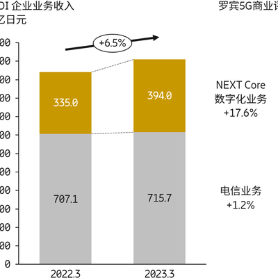 KDDI 的企业数字化转型业务 NEXT Core 在 2023Q1 取得了 17.6% 的大幅增长,在整个企业业务的收入大盘占比也提升到了 35.5%。