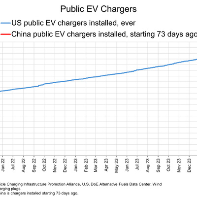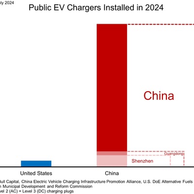 截止到 7 月底,中国在过去 73 天内新安装的公共充电桩数量与美国的总数一样多。