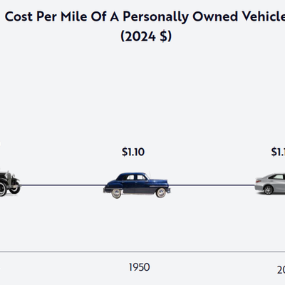 1871 年,人类通过马车出行,大约每英里的成本为 2.1 美元。汽车的出现,这个每英里成本降低到了 1.1 美元。