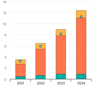 2023 年全球电动汽车销售量占乘用车重量的五分之一,接近 1400 万台。其中 95% 来自中国、欧洲和美国。