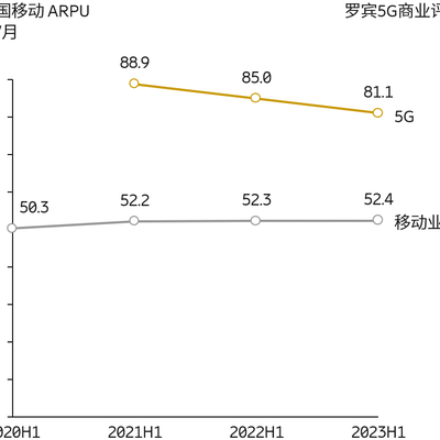 中国移动披露 2023 年上半年业绩指标,移动业务整体保持 ARPU 平稳态势,5G ARPU 80 多元,比大盘移动业务高 55%。