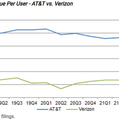 大型电信运营商,美国的 AT&T 和 Verizon 每个月的移动业务 ARPU 是相当高的,在全球处于顶级水平。