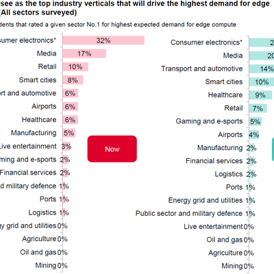 围绕那个垂直行业领域是调研对象的 “边缘计算应用当前的第一选择”,32% 的反馈是消费者电子,其次是媒体(17%)和零售(10%)。