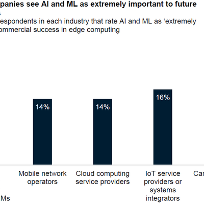从整体看,大致五分之一的反馈认为 AL 和 ML 在边缘计算的应用很重要,其中汽车制造业的反馈最高(28%)。