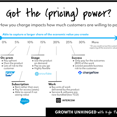 风险投资机构 Tremont 的 Kyle Poyar 归纳了 B2B 企业软件和服务领域的传统顶级和新兴定价模式。