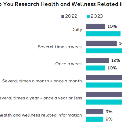 2022 年有 38% 的调研对象会每周检查其健康数据,2023 年数字增长到了 50%。