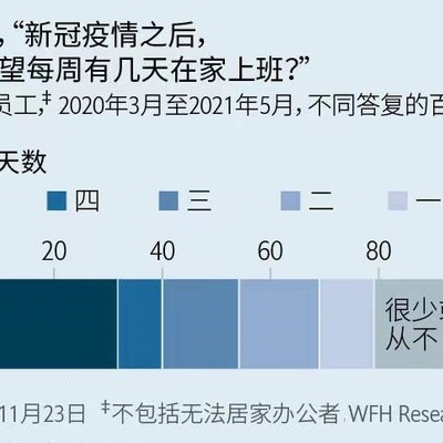 WFH Research 针对 2020 年 3 月到 2021 年 5 月的调研,围绕美国员工居家办公的比例。