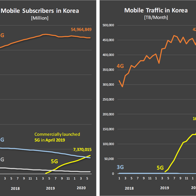 OMDIA 研究了韩国 4G 向 5G 升级期间,整体 4G LTE 和 5G 的流量变化。