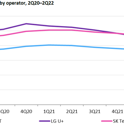 另外两家运营商中,KT 的下滑幅度也较小,LG U+ 的下滑速度则相对大。