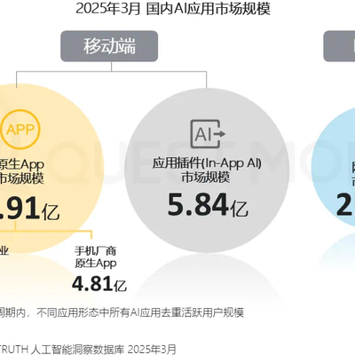 从其监测数据看,2025 年 3 月,网页版有 2.09 亿用户,原生 APP 有 5.91 亿用户,应用插件类有 5.84 亿用户。