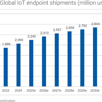 IDC 咨询公司数据现实,2024 年全球物联网终端节点(IoT Endpoint)出货量为 22.45 亿部,预计到 2032 年会提升到 30.73 亿。